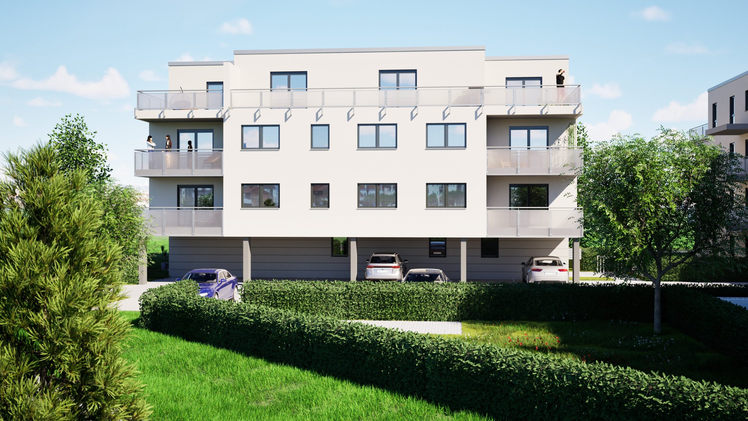 Zum angenehmen Komfort trägt der hauseigene Aufzug bei, mit dem Sie Ihre Wohnung bequem und barrierefrei erreichen. Im Erdgeschoss befindet sich ein großer Fahrradabstellraum, welcher der Gemeinschaft dient und mühelos durch einen Nebeneingang begehbar ist. Direkt am Haus entstehen Stellplätze, damit Sie Ihren Pkw sicher und bequem abstellen zu können.